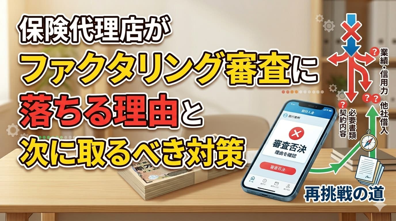 資金繰りが気になってファクタリングを検討したのに、審査が通らなかった。こういう場面は、気持ちが少し焦りますよね。しかも、落ちた理由がはっきり見えないままだと、次に何を見直せばよいのか分かりにくくなります。保険代理店では、入金までのタイムラグや書類の整い方が審査の進み方に影響しやすく、再申込の前に確認しておきたい材料がいくつかあります。この記事では、審査に落ちるときに見られやすいポイントを整理しながら、次の申込前に確認したい項目を、公的な公開情報に沿ってまとめます。 注意喚起資料 制度案内